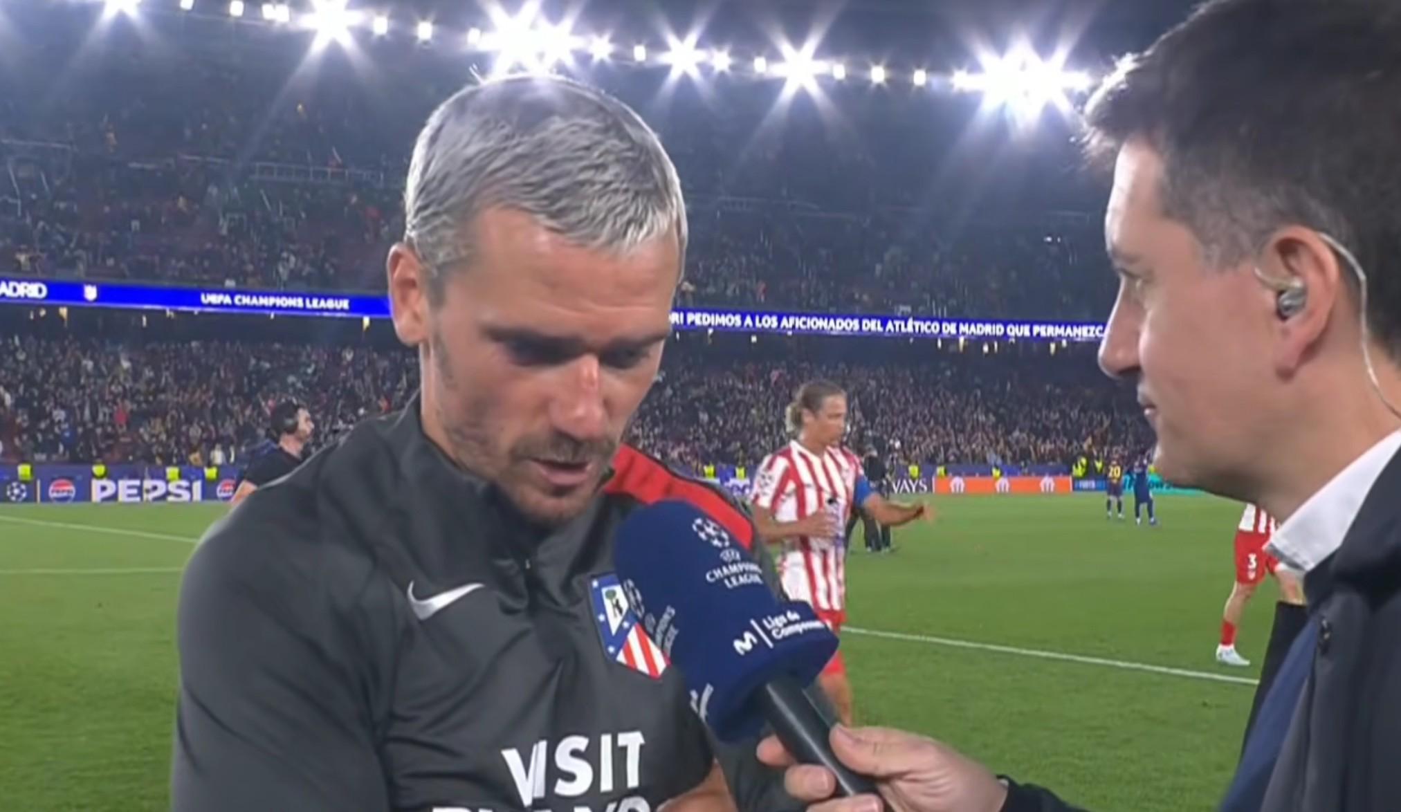 欧冠淘汰赛1/4决赛首回合,马竞客场2-0战胜巴萨,马竞中场格列兹曼赛后接受了采访。