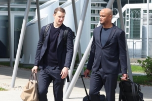 诺伊尔尽管有肌肉伤病,但他仍作为“幸运符”随队前往米兰并坐在国米主场的替补席上。在返程时,他和孔帕尼的谈话非常认真,后者看起来也对与诺伊尔的对话非常重视。