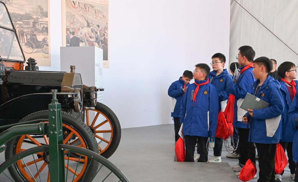 2026年3月13日,一群学生正在通过展览了解“汽车百年发展史”。本文均为澎湃新闻记者 吴栋 图
