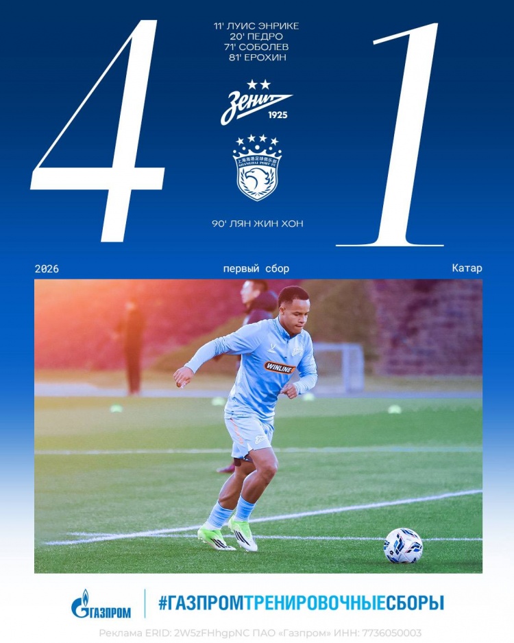 据泽尼特官网介绍,两队还将在1月26日于卡塔尔再度交手。